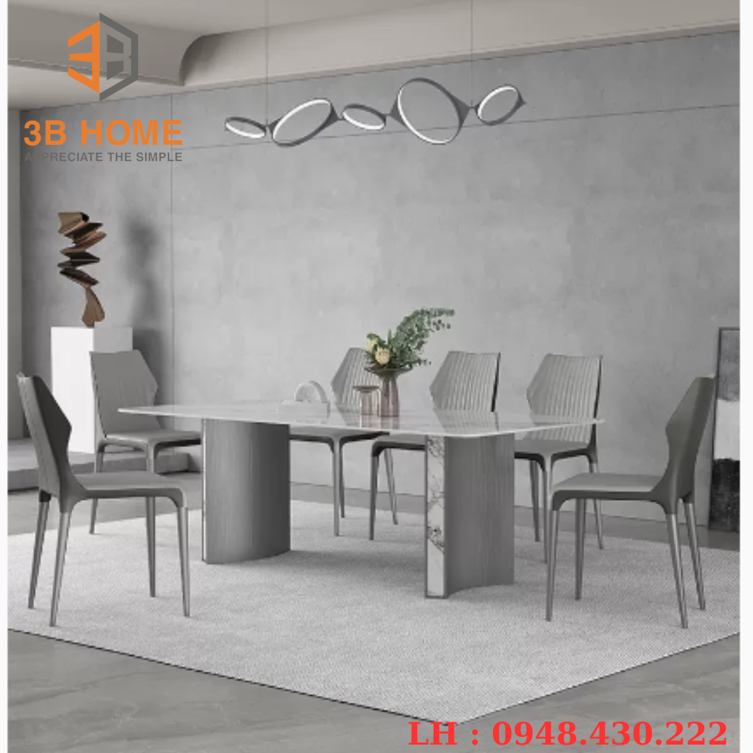 Mặt bàn đá phiến tự nhiên , chân bàn inox sáng bóng Chân ghế inox ,đệm bọc da cao cấp. |