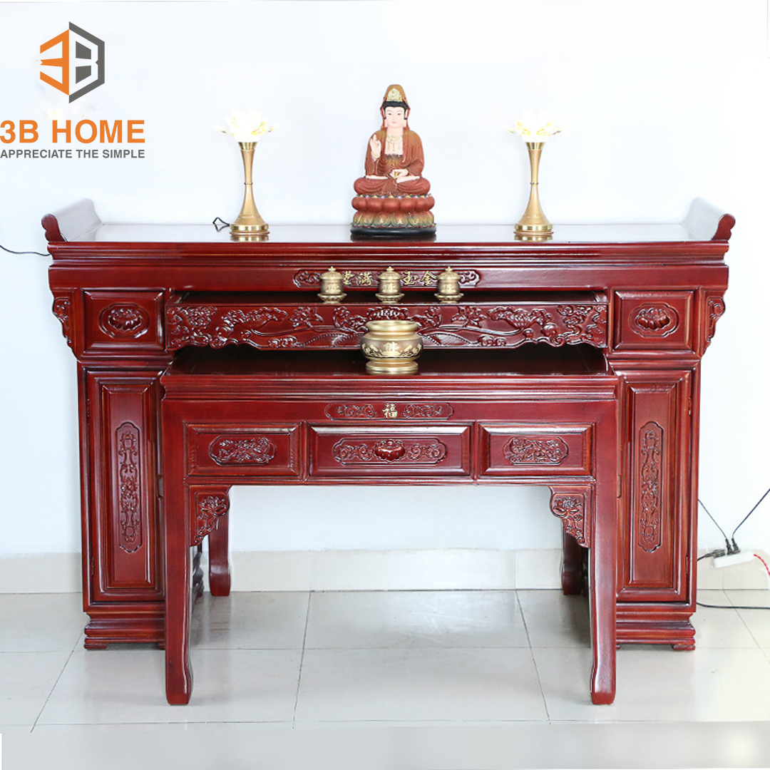| Kích thước: | Bàn thờ chính : dài155/175/195 cm, rộng 68cm cao 108cm bàn thợ phụ : dài 88/106 cm rộng 68/ 88/106 cm cao 81cm |