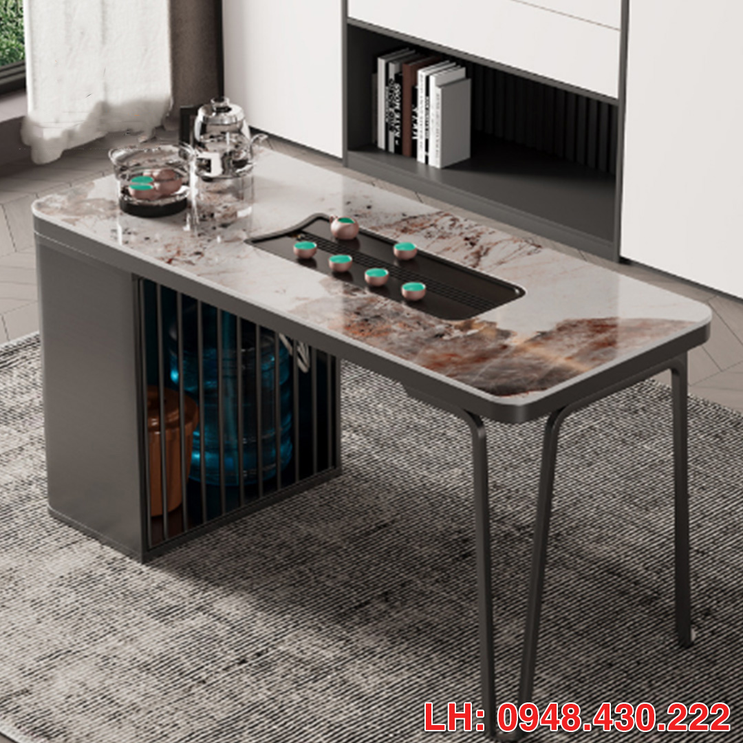 Mặt bàn đá phiến tự nhiên , chân bàn thép không gỉ.