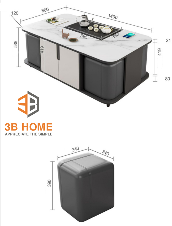 Các chi tiết của sản phẩm bàn trà thông minh 3B Home BT25: