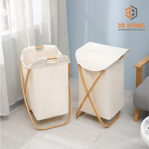 Khung gỗ tre tự nhiên giỏ đựng quần áo là vải ninong ko thấm nước |