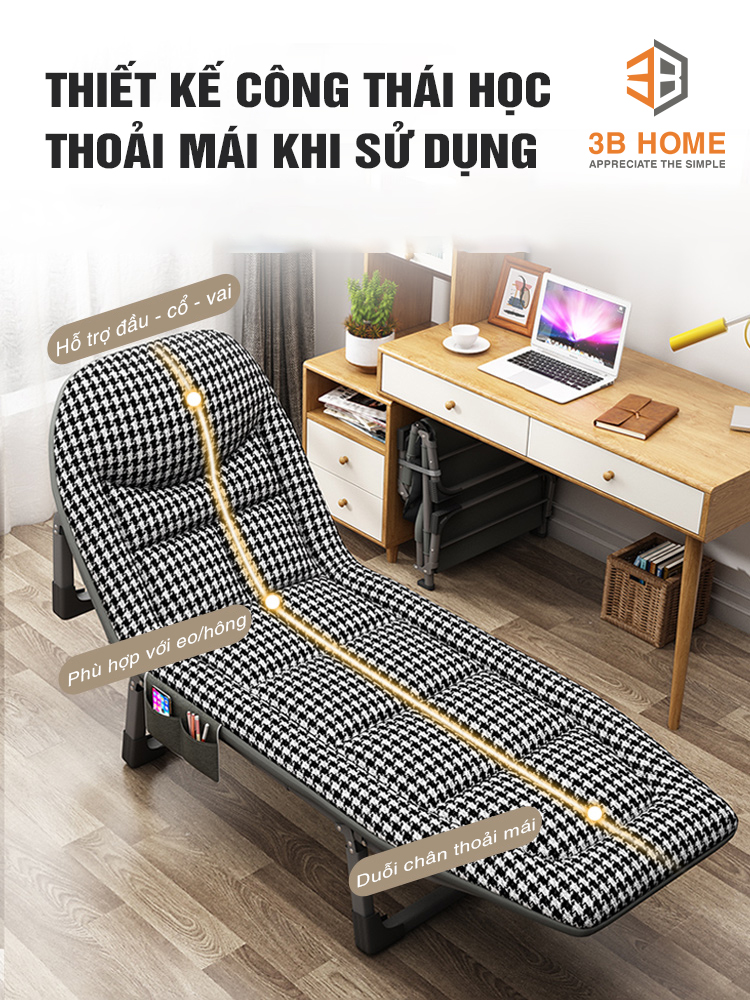 Một sản phẩm giường gấp tiện lợi đã được 3B Home cho ra mắt sau khi nghiên cứu kỹ nhu cầu và mong muốn của khách hàng. Thiết kế đơn giản nhưng lại rất được ưa chuộng bởi tính đa năng của nó. Sản phẩm được thiết kế công thái học, mang lại cảm giác thoải mái và dễ chịu khi sử dụng. Nhiều chế độ nâng, người dùng có thể tuỳ chỉnh theo nhu cầu sử dụng. Cùng xem chi tiết sản phẩm dưới đây nhé!
