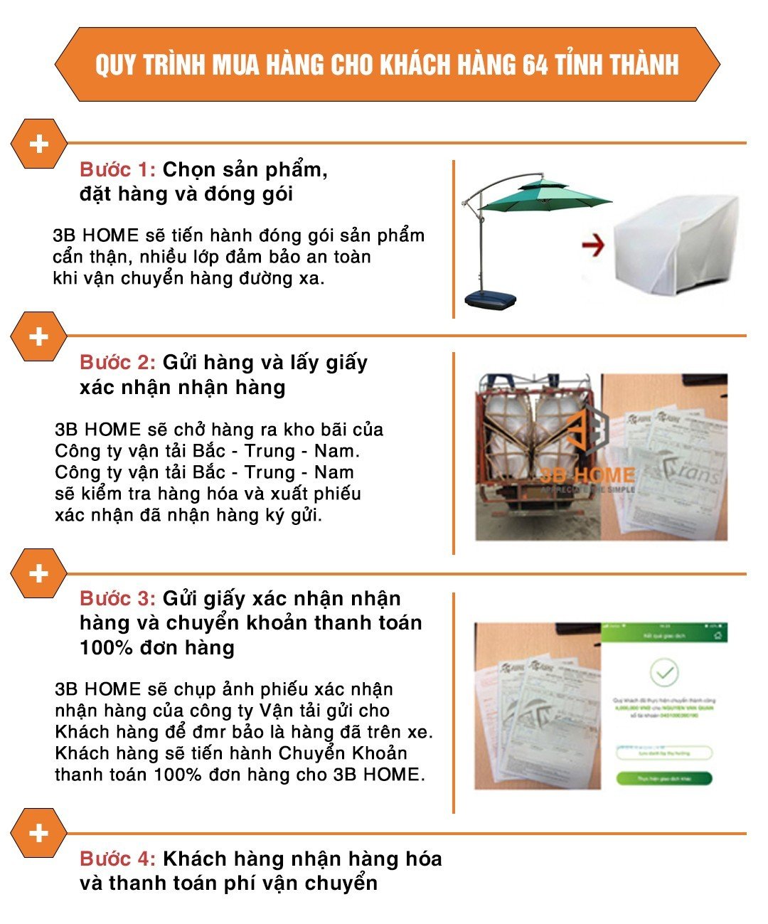 Lưu ý về thời gian đặt hàng: Khi sản phẩm hết hàng hoặc không có sẵn thời gian đặt hàng với hàng sản xuất là 3 – 7 ngày. Hàng nhập khẩu 7 - 15 ngày, một số sản phẩm cao cấp thời gian đặt sẽ lâu hơn. Quý khách vui lòng liên hệ trực tiếp với 3B HOME để có thông tin chính xác nhất.
